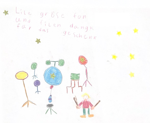 «Liebe Winterhilfe, ich möchte mich ganz herzlich für den Ovo-Adventskalender bedanken. Dank Ihnen habe ich jetzt wieder Energie – schließlich kann ich jeden Tag ein Stück Schokolade geniessen! 😊 Auserdem wollte ich Ihnen mitteilen, dass ich nach wie vor große Freude an meinem Hobby habe. Es gefällt mir so sehr, dass ich mir gar nicht vorstellen kann, was ich ohne Ihre Unterstützung gemacht hätte. Ich entdecke ständig neue Lieder, verbessere mich immer weiter und geniesse die Entwicklung sehr. Es macht mir wirklich unglaublich viel Spass.»