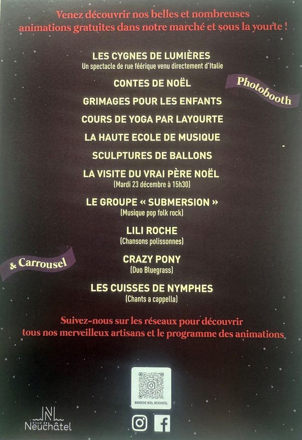 Die Winterhilfe Neuenburg wird vom 5. bis 14. Dezember 2025 einen Stand auf dem Weihnachtsmarkt im Jardin Anglais haben.