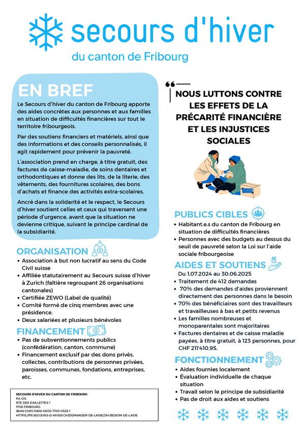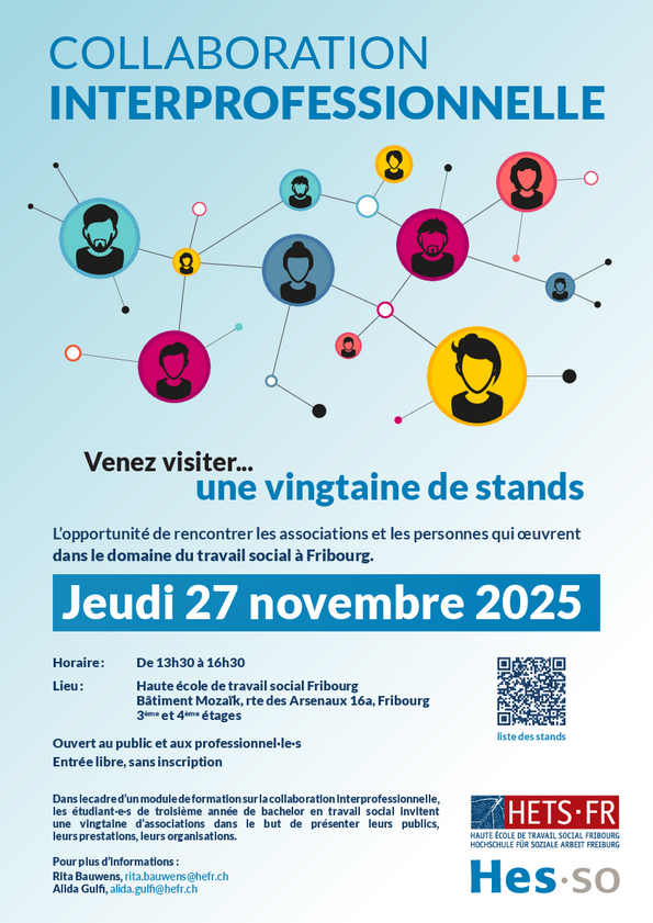 Am 27. November 2025 nahm die Winterhilfe Freiburg an einem Informationsnachmittag teil, der von der Hochschule für Sozialarbeit Freiburg (HETS-FR) organisiert wurde. Diese Veranstaltung, die Teil eines Ausbildungsmoduls zur interprofessionellen Zusammenarbeit war, brachte rund zwanzig Organisationen aus dem sozialen Bereich zusammen.